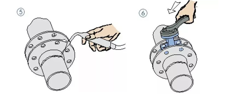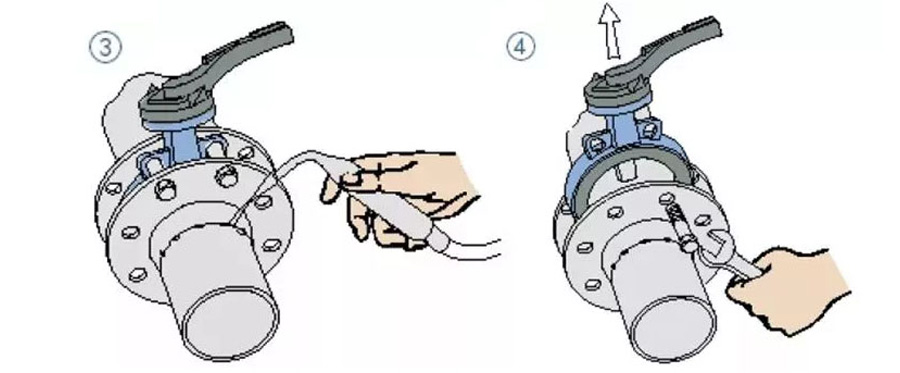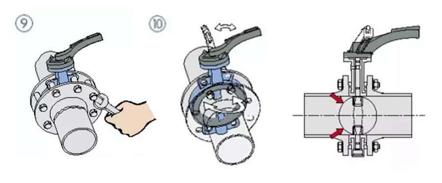6. Sau khi mối hàn nguội, tiến hành lắp van. Đảm bảo rằng van có đủ không gian trong mặt bích để tránh van bị hỏng và đảm bảo rằng tấm van có độ mở nhất định;